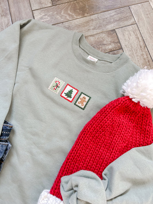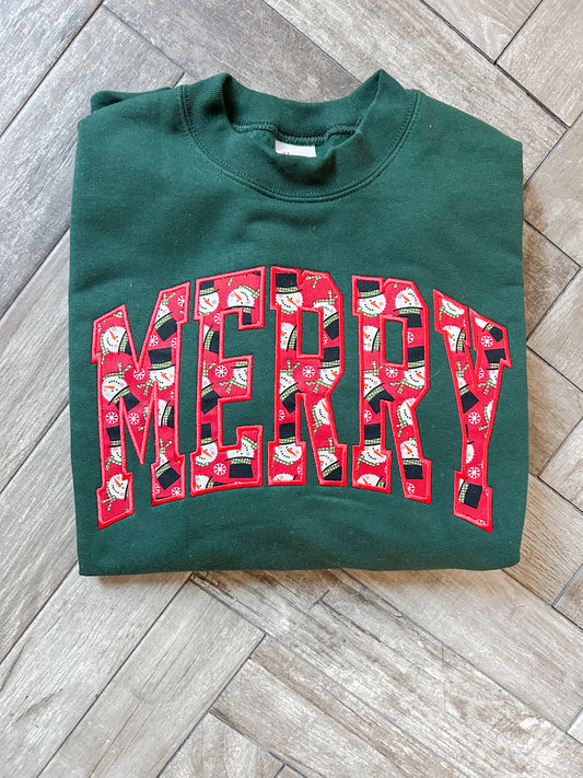 Merry Applique Embroidered Sweatshirt (Green)