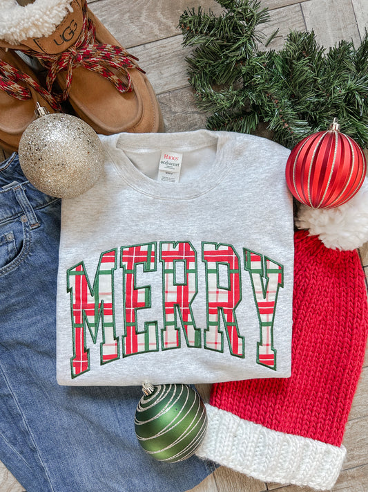 Merry Applique Embroidered Sweatshirt (Grey)