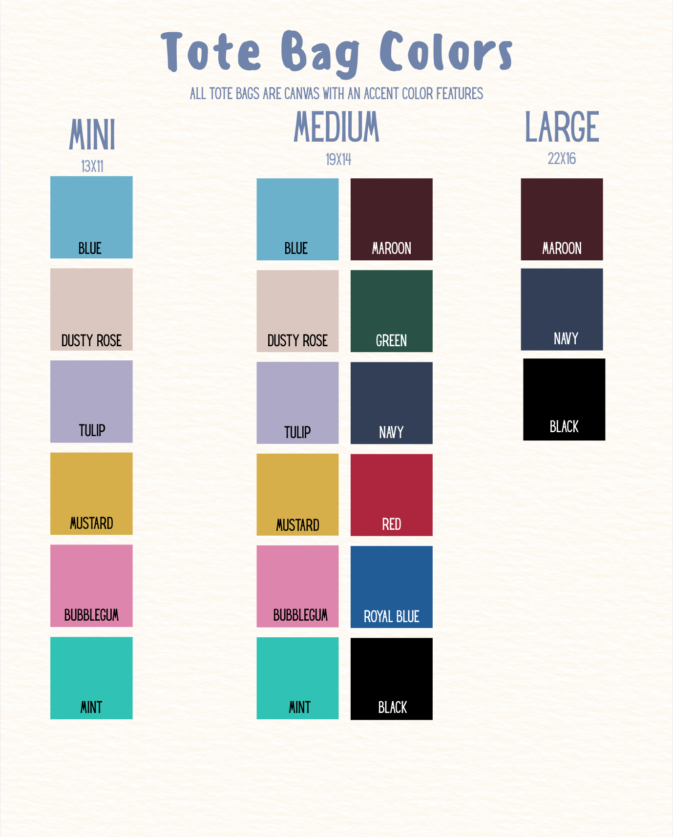 Select your tote size and once the order is placed, message me on instagram @mooseandmillieco or email mooseandmillie@yahoo.com for the name/monogram/color etc!
