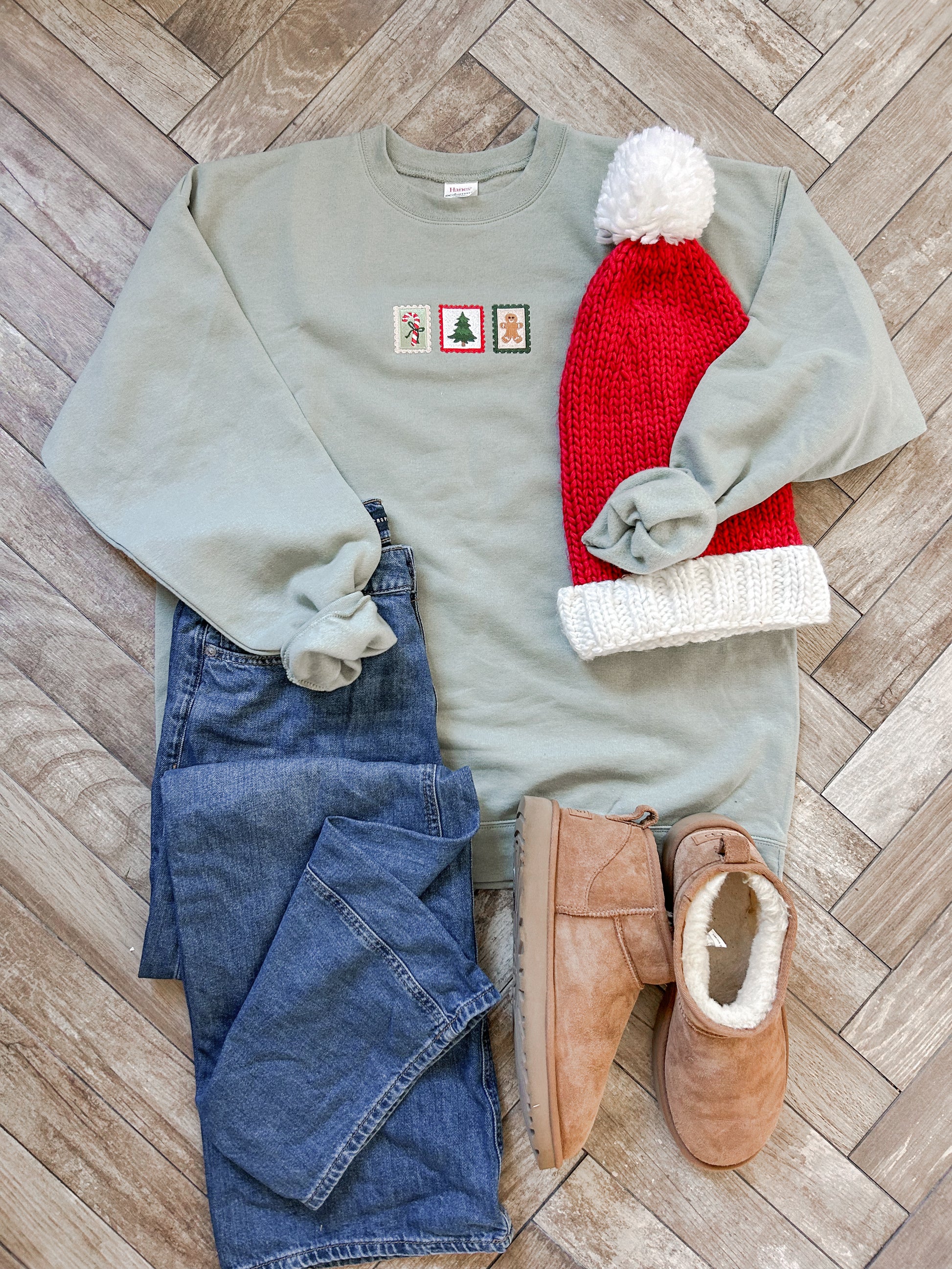 Celebrate the holiday season with the Jolly Ole Stamps embroidered sweatshirt. Featuring festive Christmas stamp designs, this cozy sweatshirt brings warmth and holiday cheer to your wardrobe. Perfect for staying comfortable during chilly winter days while spreading a supportive festive spirit.